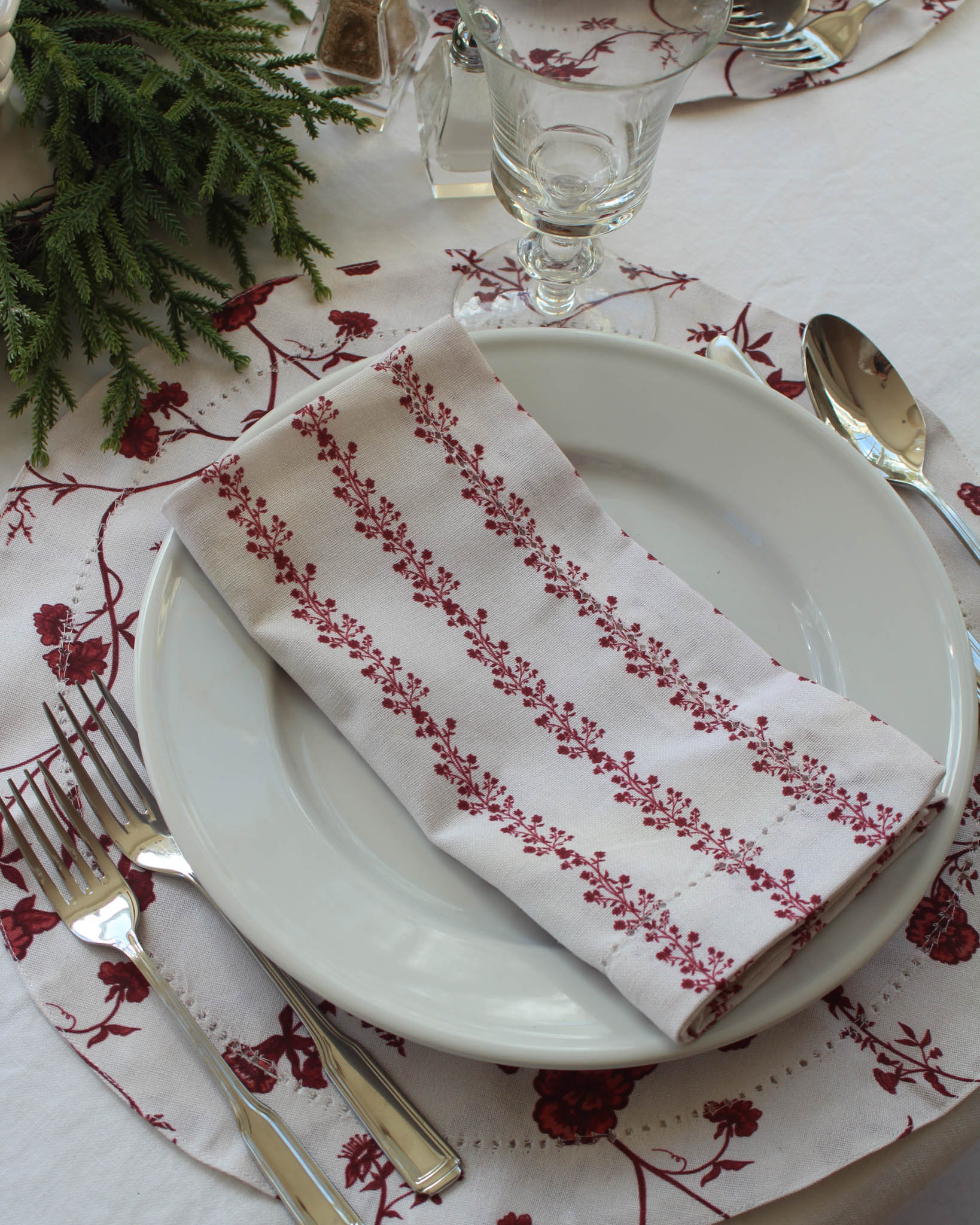 The Begonia Stripe Napkins are made for mixing, matching, and making your table feel welcoming. Crafted from organic cotton with subtle hemstitch detail, they pair effortlessly with our other linens. Whether you love a layered look or prefer something simple, the hand-drawn print is perfect for Thanksgiving and Christmas table decor. From weeknight dinners to hosting friends over holidays, these napkins bring an easy charm to every setting.